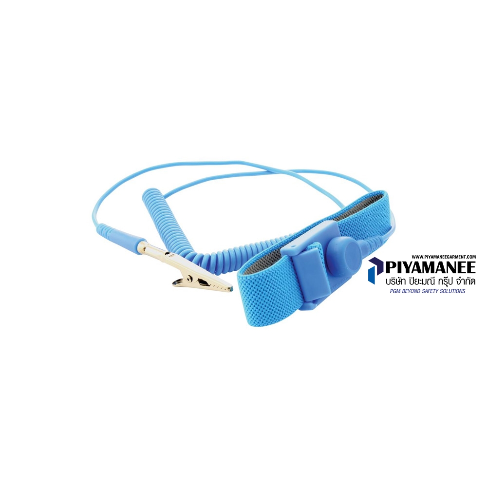 สายรัดข้อมือถ่ายเทประจุไฟฟ้าสถิต (ESD Wrist strap/coil cord) แบบเส้นเดี่ยว สีฟ้า ยาว 1.8 ม.