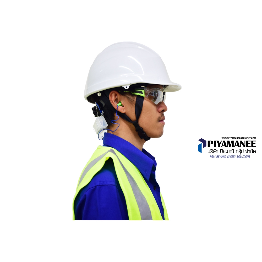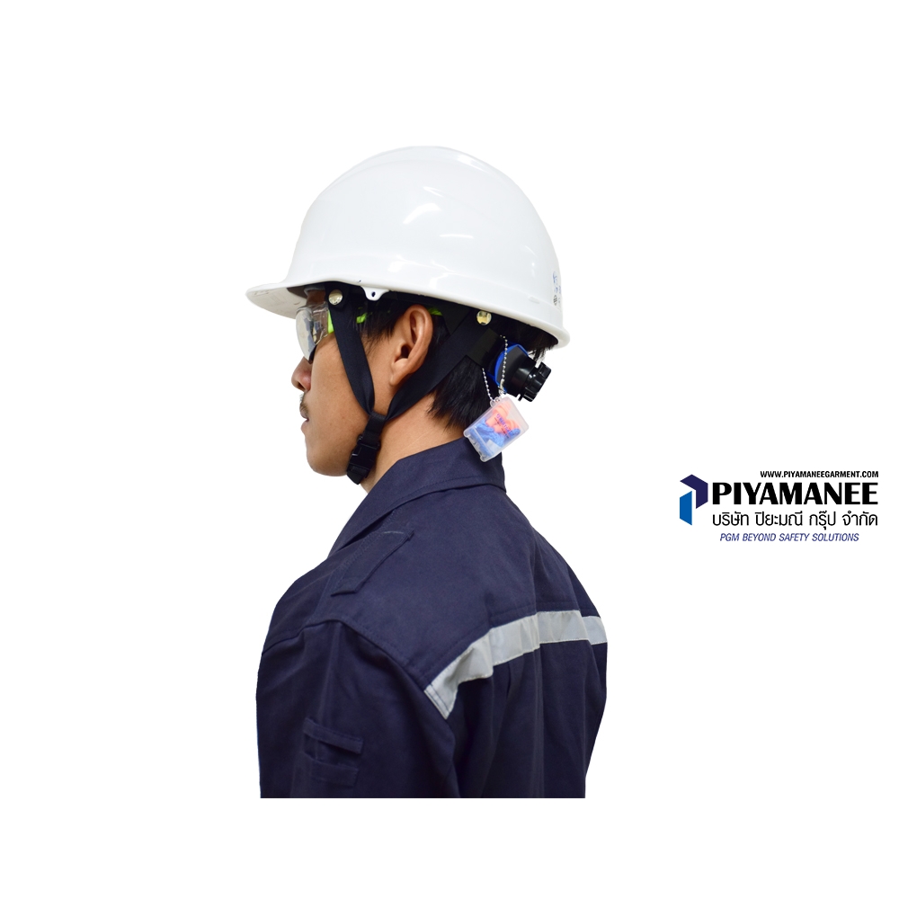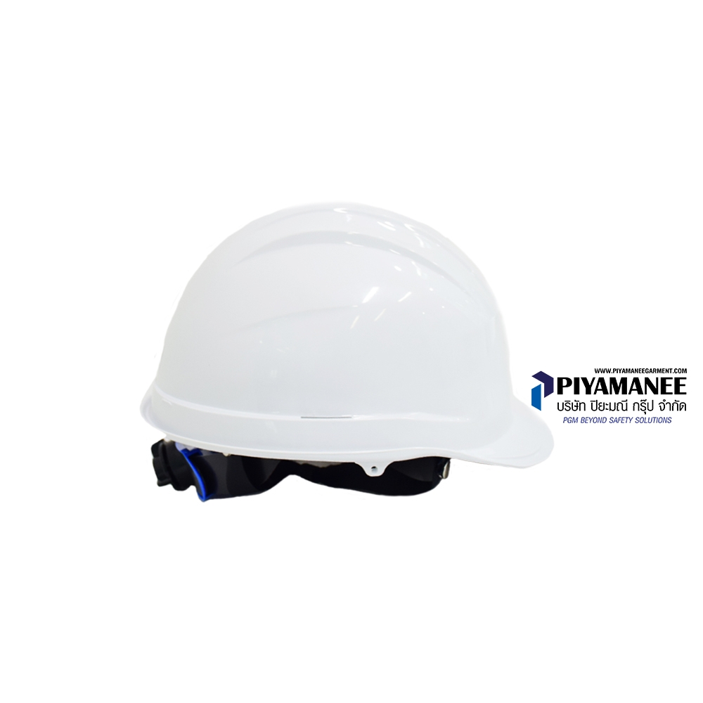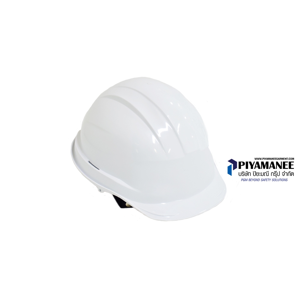 หมวกนิรภัย วัสดุ ABS น้ำหนักเบา แข็งแรง รองรับมาตรฐาน มอก. เหมาะสำหรับงานความร้อนสูง มากกว่า 600 องศาเซลเซียส เช่น งานหน้าเตา สามารถต้านทานไฟฟ้าได้สูง >20,000 V อายุการใช้งาน > 5 ปี ป้องกันการหลุดจากศรีษะได้ดีสามารถสวม-ถอด ยางรองคางได้กระจายน้ำหนักได้ดีกว่า ปีกหมวกหรือกระบังหมวก (Peak)ปีกหมวกสั้น ออกแบบมาเพื่อเพิ่มมุมมองด้านหน้าได้มากขึ้น เปลือกหมวก (Shell)ฉีดขึ้นรูปเป็นชิ้นเดียว ไม่มีรอยต่อ และมีสีต่างๆ เพื่อแบ่งกลุ่มงาน ผลิตจากวัสดุ ABS (Acrylonitrile Butadiene Styrene) ทนความร้อน เป็นฉนวนกันไฟฟ้า มีร่องรองน้ำฝน อยู่รอบปีกหมวกทำให้ป้องกัน น้ำไหลผ่านออกทางด้านข้าง ช่องประกอบอุปกรณ์ (Slots) อยู่ด้านข้างหมวกนิรภัยทั้ง 2 ข้างเพื่อใช้ประกอบร่วมกับ อุปกรณ์อื่น เช่น Earmuff และ Face shield โดยมีขนาดช่องกว้าง 3 ซม.รองในปรับหมุนแบบใหม่ rawmaterial : PP + POM polymer innovation l อ่อนนุ่ม แข็งแรง