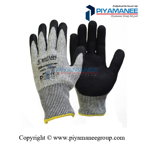 D-02 ถุงมือ เส้นใย HPPE เคลือบ Nitrile ยี่ห้อ BESTSAFE