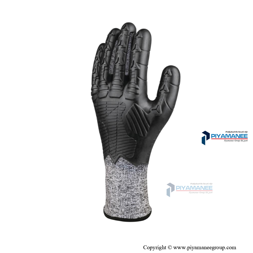DELTAPLUS-VV913 #ถุงมือกันบาดHPPEระดับ 5, Class D,A4 + ป้องกันความเย็นระดับ 3 , วัสดุเสริมวัสดุTPR กันการกระแทกหลังมือและปลายนิ้ว,เ Double Coat ฝ่ามือด้วย foam Nitrile, เย็บด้วยวัสดุ Kevlar